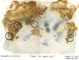 "Sables mouvants" - Semaine n° 11 du lundi 10 au dimanche 16 mars 2003. Technique mixte sur papier, format 56 x 76 cm.